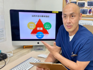 「今後患者様が70、80歳になるまで自分の足で歩けてしっかり運動、趣味を楽しんでもらえる身体づくりをサポートしていくこと」です。